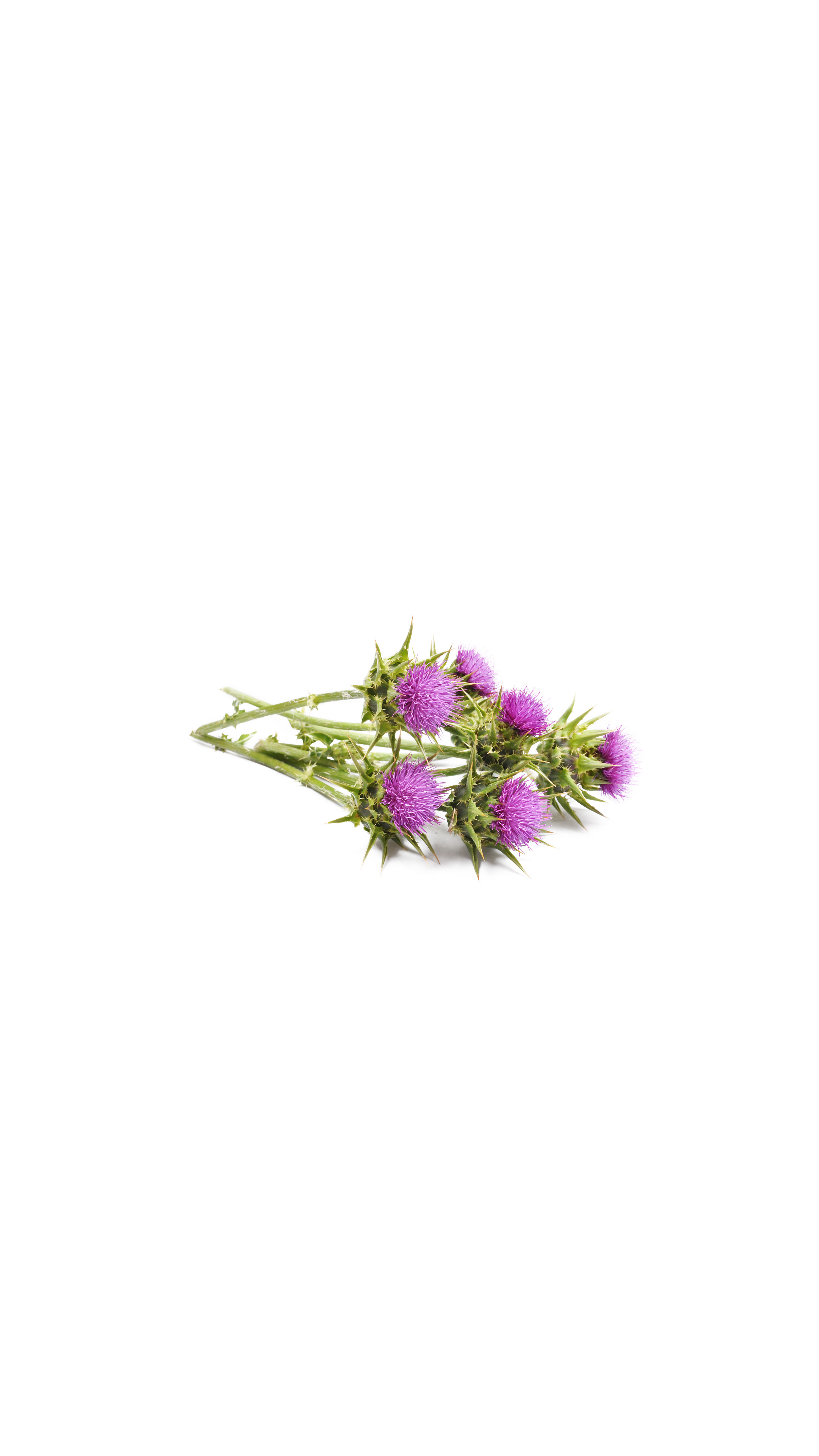 Il cardo mariano è una pianta nota per le sue proprietà protettive e depurative sul fegato. Contiene silimarina, un potente antiossidante che supporta la rigenerazione epatica, favorisce la disintossicazione e protegge le cellule del fegato dai danni. Viene utilizzato per il benessere epatico e per favorire la digestione